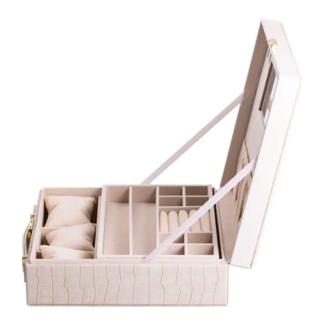 Шкатулка для украшений из эко кожи, 2 яруса – идеальный органайзер для бережного хранения ваших ювелирных изделий. Компактный и функциональный дизайн с размерами 26×26×9 см обеспечивает удобство использования и легкость хранения. Выполненная из качественной эко кожи, эта шкатулка станет стильным дополнением любого интерьера, сочетая в себе практичность и элегантность. Основные характеристики органайзера для хранения бижутерии размеры шкатулки для украшений 26×26×9 см; количество ярусов - 2 шт; количество отсеков - 20 шт; материал корпуса - экокожа; внутреннее покрытие - велюр; зеркало в комплекте. Шкатулка оборудована двумя вместительными ярусами, предлагающими 20 разнообразных отсеков. Это позволяет аккуратно разместить кольца, серьги, цепочки, браслеты и другие украшения, предотвращая их повреждения и спутывание. Внутреннее покрытие из мягкого велюра обеспечивает дополнительную защиту от царапин и повреждений. Основные преимущества шкатулки для украшений из эко кожи Экологичная кожа приятна на ощупь, долговечна и устойчива к внешним повреждениям, а велюровое покрытие внутри бережно хранит драгоценности и предотвращает появление царапин. Благодаря 20 отдельным отсекам и двум просторным ярусам, все украшения аккуратно размещены и всегда находятся под рукой. Современное исполнение и сдержанные цвета органично вписываются в любой интерьер, превращая органайзер в стильный элемент декора. Встроенное зеркало добавляет функциональности и облегчает выбор украшений. Отличное решение для подарка по любому поводу: День рождения, 8 марта, годовщина, День святого Валентина или Новый год. Дополнительным преимуществом модели является встроенное зеркало, удобное для примерки украшений и ухода за собой. Шкатулка из эко кожи отлично подходит в качестве подарка на любой праздник, а также будет полезным приобретением для личного использования. Купить шкатулку для ювелирных изделий можно с доставкой по всей Украине.