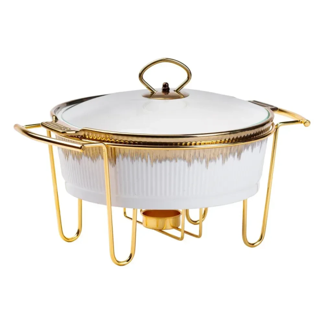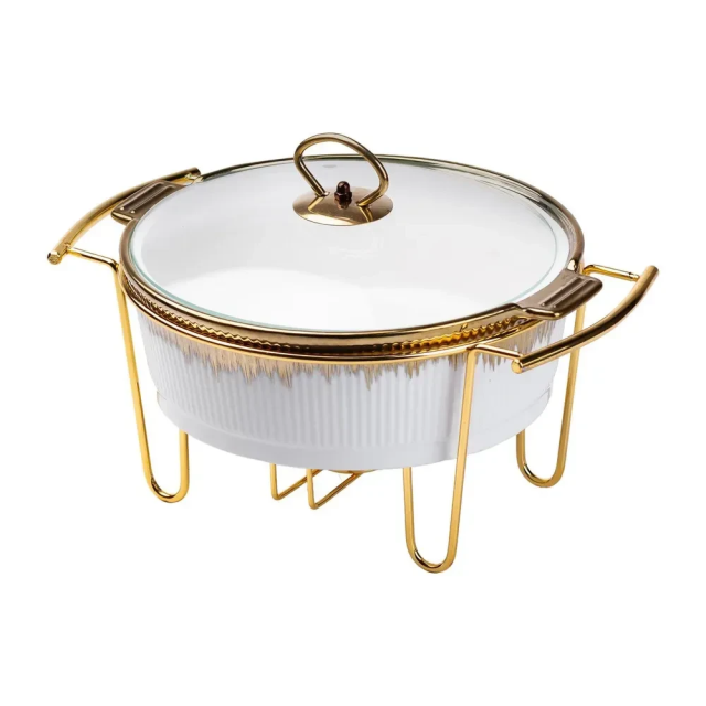 Настольная мармитница круглая на металлической подставке станет идеальным выбором для любого банкета или праздничного мероприятия. Металлическая...