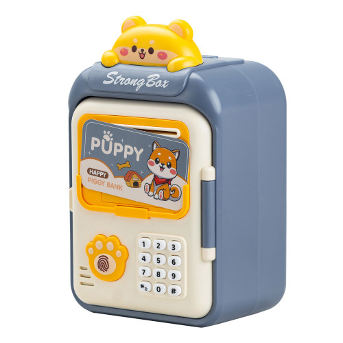 Копилка сейф для детей с отпечатком пальца и кодовым замком для денег электронная от батареек 14х10.5х24 см HP12265BL