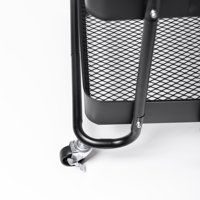 Удобный мобильный візок с тремя глубокими полками — универсальное решение для организации пространства дома, офиса или салона. Он подходит для хранения посуды, косметики, инструментов и различных аксессуаров, а также станет отличным помощником для мастеров: парикмахеров, визажистов и специалистов по маникюру. Металлический каркас выдерживает нагрузку до 10 кг на каждую полку, а колёса обеспечивают лёгкое перемещение. Для надёжной фиксации предусмотрены стопоры на двух колёсах. Преимущества мобильного візка на колёсах: Три вместительные полки для хранения посуды, косметики, инструментов и бытовых мелочей; Универсальное использование: подходит для дома, офиса, салонов красоты; Прочная металлическая конструкция с сетчатыми полками; Колёса вращаются на 360°, обеспечивая манёвренность; Фиксаторы для устойчивости и безопасности; Современный минималистичный дизайн, подходящий под любой интерьер. Характеристики трёхъярусного візка: Материал: металл; Количество полок: 3; Тип: напольный; Размеры: 46×35×79 см; Вес: 4,6 кг; Размер каждой полки: ширина 28 см, длина 40 см.
