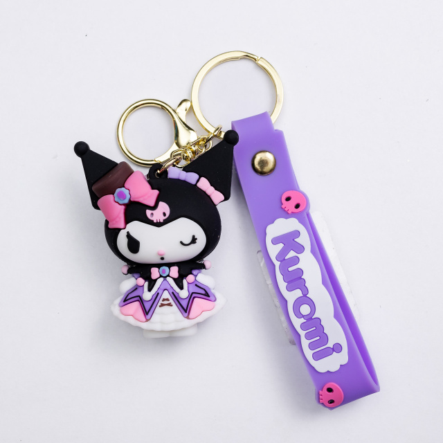 Забавный брелок в виде Kuromi выполнен из мягкого силикона и дополнен прочной металлической фурнитурой. Он стильно смотрится на ключах, рюкзаке или