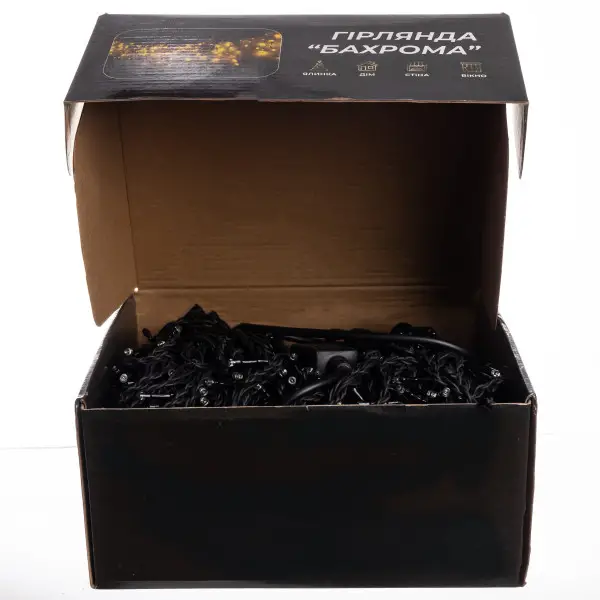 Гирлянда «Бахрома» с 840 светодиодными лампочками создаёт выразительное декоративное освещение и помогает оформить пространство к празднику. Длина основного шнура — 50 метров, что позволяет использовать гирлянду для украшения фасадов, окон, балконов, витрин или интерьера помещений. Благодаря чёрному кабелю изделие выглядит аккуратно и незаметно днём, а в тёмное время суток равномерно рассеивает свет, создавая эффект мягкого сияния. Конструкция включает подвесные линии разной длины — 65 см, 50 см и 30 см, которые формируют красивый каскад. Расстояние между линиями — 30 см, между лампочками — 8 см, что обеспечивает плотное и равномерное свечение без затемнённых участков. Удлинённый провод от вилки до первой лампочки (102 см) обеспечивает удобство подключения. Основные характеристики уличной новогодней гирлянды: Тип: гирлянда «Бахрома»; Тип: гирлянда «Бахрома»; Источник питания: от сети; Количество LED: 840 шт.; Общая длина: 50 м; Расстояние от вилки до первой лампочки: 102 см; Расстояние между линиями: 30 см; Расстояние между лампочками: 8 см; Количество линий: 164; Длина линий: 65 см, 50 см, 30 см; Цвет провода: черный; Цвет свечения: белый. Особенности светодиодной гирлянды на дом: 840 ярких светодиодов для равномерного и насыщенного свечения. Общая длина гирлянды — 50 м, удобна для оформления больших площадей. 164 подвесных нитей разной длины (65, 50 и 30 см) создают эффект каскада. Расстояние между линиями — 30 см, между лампочками — 8 см. Удлинённый провод от вилки до первой лампочки — 102 см. Работает от сети, оснащена режимом мягкого мерцания («флеш»). Светодиоды энергоэффективны, долговечны и не нагреваются. Подходит для внутреннего и внешнего оформления. Нейтральный чёрный кабель — эстетично и аккуратно при монтаже. Светодиодная гирлянда «Бахрома» — это сочетание функциональности, эстетики и надёжности. Она станет универсальным элементом праздничного оформления, создаст уютную атмосферу и подчеркнёт индивидуальный стиль любого пространства.