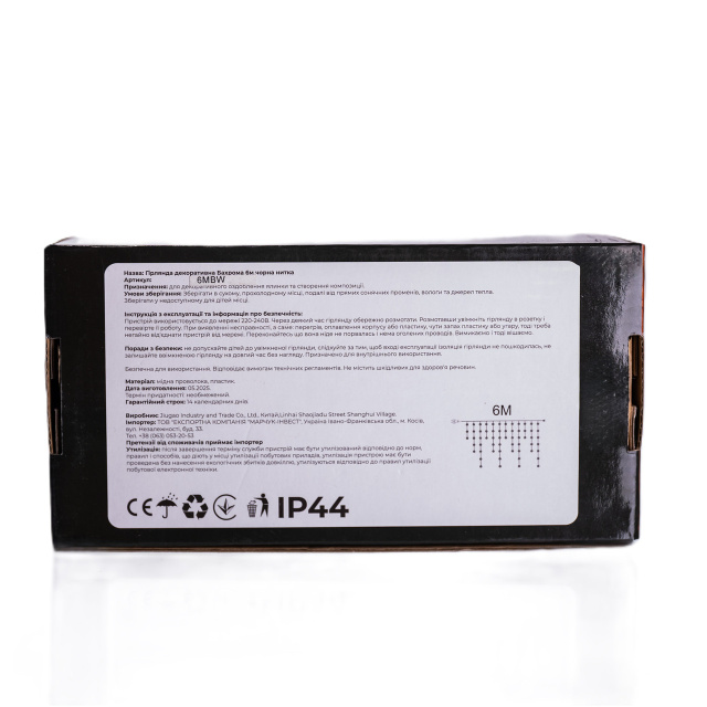 Уличная гирлянда Бахрома — это эффектное решение для создания праздничного освещения и украшения дома, фасада, террасы, кафе или ресторана. Она помогает создать уютную атмосферу и привлекает внимание благодаря яркому мультиколорному свечению с эффектом флеш. Гирлянда имеет прочную конструкцию и высокий уровень защиты от влаги и пыли, что позволяет использовать её на улице в течение всего года. Мягкий свет, плавная передача цветов и разнообразие оттенков делают её идеальной для новогоднего или декоративного оформления любого пространства. Основные характеристики уличной гирлянды: Тип: бахрома; Длина: 6 м; Количество светодиодов: 105; Цвет свечения: Белый; Цвет провода: черный; Питание: от сети; Длина шнура питания: 96 см; Расстояние между нитями: 29 см; Расстояние между лампочками: 8 см; Общее количество линий: 21 (длина линий — 65, 50 и 30 см); Режим работы: флеш; Возможность соединения между собой: есть; Степень защиты: IP44; Вес: 0.50 кг; Размер упаковки: 18×10×8 см. Особенности светодиодной гирлянды Бахрома: • Яркое мультиколорное свечение с эффектом флеш; • Высокий уровень влагo- и пылезащиты (IP44); • Возможность соединения нескольких гирлянд между собой; • Безопасная и энергоэффективная работа от сети; • Прочный белый провод с ПВХ-изоляцией, устойчивый к перепадам температуры; • Подходит для украшения фасадов, крыш, балконов, деревьев и витрин; • Долгий срок службы светодиодов — до 50 000 часов. Гирлянда Бахрома — это надёжное, долговечное и стильное решение для создания праздничной атмосферы в любое время года. Она сочетает в себе яркость, безопасность и энергоэффективность, становясь красивым акцентом вашего наружного или внутреннего декора. Внимание! Данный товар подлежит возврату только в случае проверки его исправности на почте. В остальных случаях возврат товара не осуществляется.