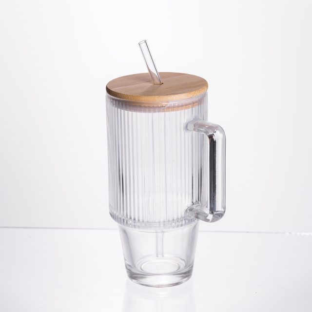 Кружка стеклянная с крышкой и трубочкой 750 (мл) HP-19-48