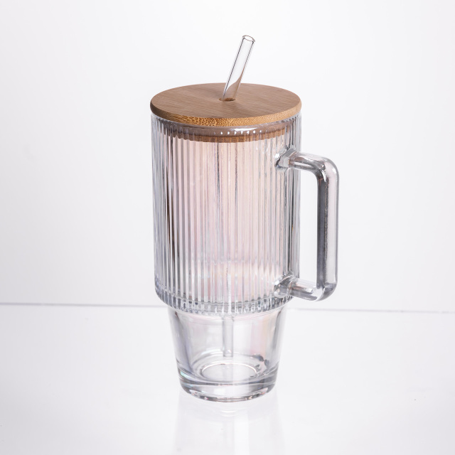 Кружка стеклянная с крышкой и трубочкой 750 (мл) HP-19-49