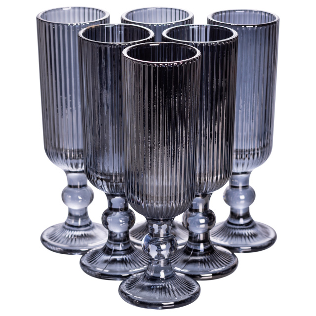 Набор бокалов для шампанского 6 штук 160 (мл) подарочные стеклянные бокалы на высокой ножке Серый HP-19-7116G