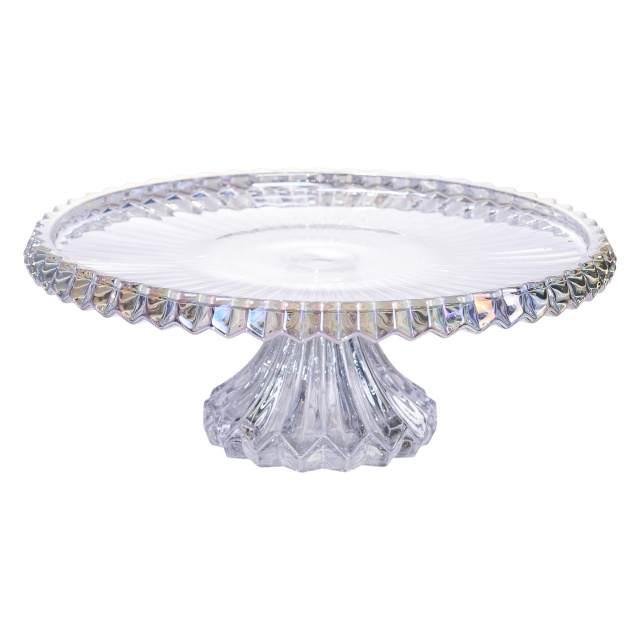 Эта тортовница на ножке изготовлена из прозрачного стекла с имитацией хрустального узора, создающего эффект лучистого сияния. Изделие имеет круглую форму с рельефным краем и гладкой центральной частью для удобного размещения тортов, пирогов или другой выпечки. Конструкция предусматривает прочное .юоснование, которое не только придает изделию устойчивости, но и позволяет эффектно презентовать десерты на праздничном столе. Основные характеристики тортовницы: Диаметр: 32 см; Высота: 12.5 см; Высота ножки: 10 см; Материал: стекло. Особенности тортовницы: Выполнена из прочного прозрачного стекла; Устойчивое и надёжное основание; Идеальный размер для подачи тортов, пирожных, капкейков, фруктов и других десертов; Подходит как для домашнего использования, так и для торжественных мероприятий, свадеб и банкетов. Диаметр поверхности тортовницы обеспечивает достаточно места для большого торта, а высота ножки создает дополнительный визуальный акцент. Материал - закаленное стекло, которое не имеет запаха, легко моется и не впитывает цветные пигменты. Форма ножки коническая с рельефным узором, который повторяет геометрию краев, создавая целостное дизайнерское решение. Такая тортовница подходит как для ежедневного использования, так и для сервировки на торжества. Благодаря классическому прозрачному оформлению она хорошо сочетается с любой посудой. Оптимальный выбор для заведений питания или домашнего пользования, где важно не только функциональное назначение, но и визуальная презентация десерта.