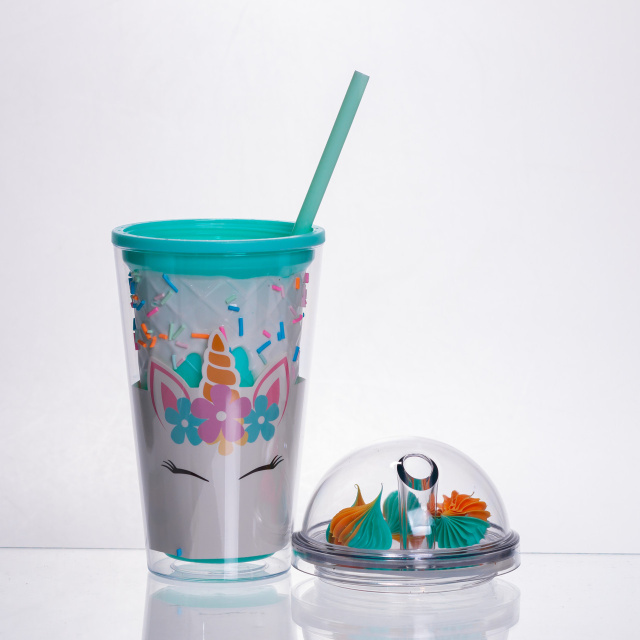 Пластиковый стакан с трубочкой и крышкой 400 (мл) многоразовый пластиковый стакан Бирюзовый HP-18-1TU
