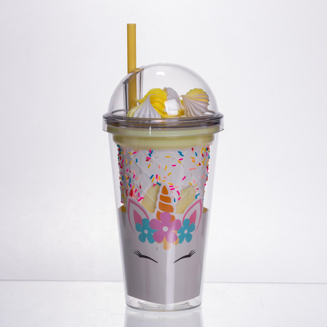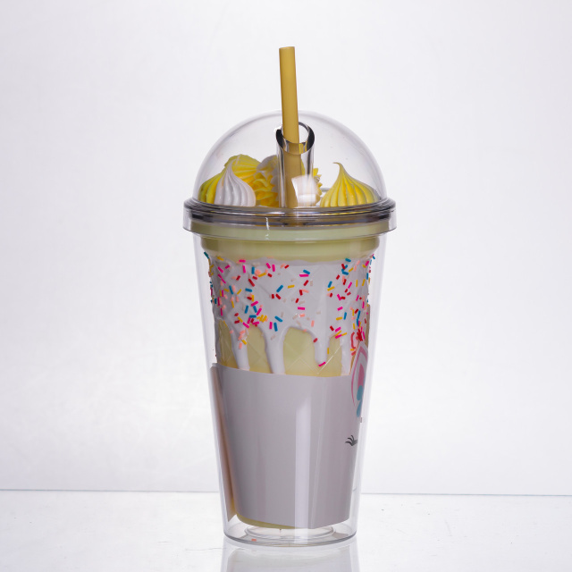 Пластиковый стакан с трубочкой и крышкой 400 мл многоразовый Желтый HP-18-1Y