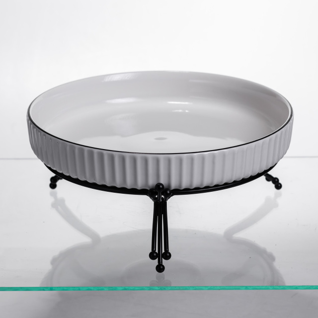 Фруктовница фарфоровая на металлической подставке Ø25 (см) круглая ваза конфетница для фруктов Белый с черным LB-1572B