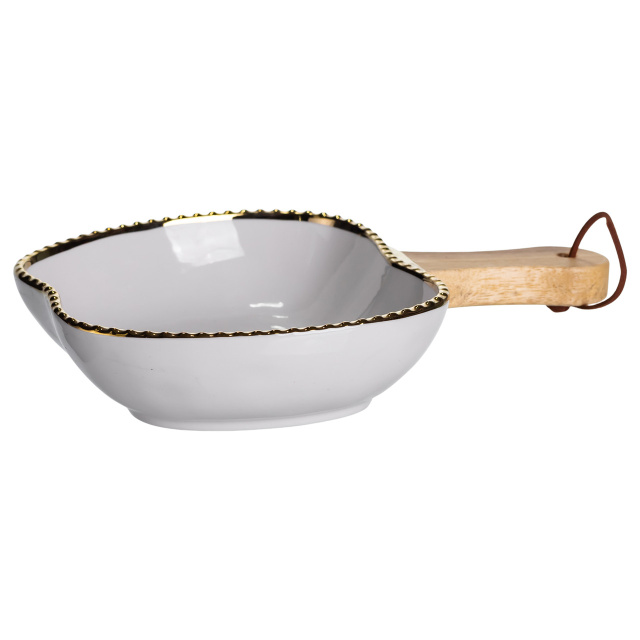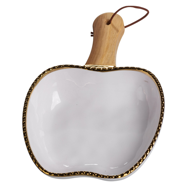 Тарелка фарфоровая глубокая с ручкой Яблоко 23×16×4 (см) блюдо сервировочное с ручкой для подачи тарелка сковорода Золото ZJH-14-1