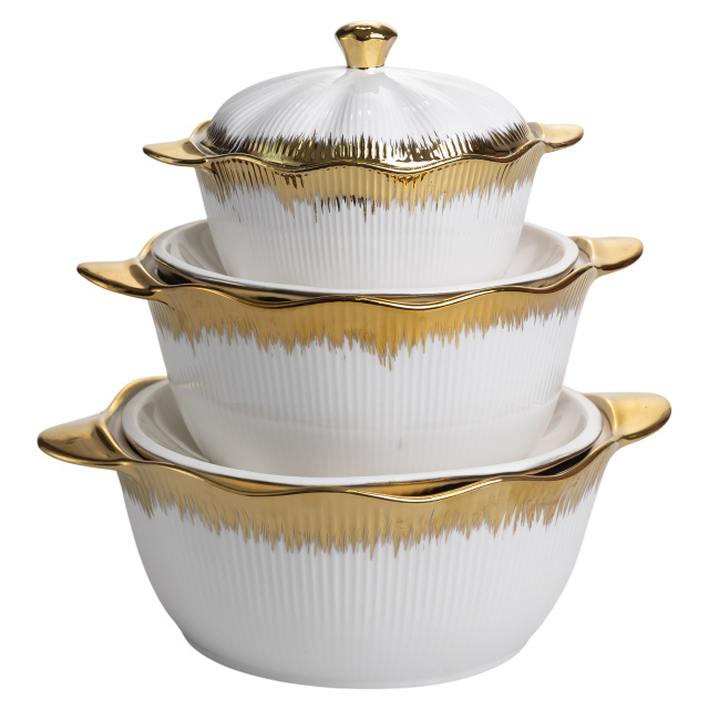 Набор супниц фарфоровых 3 (шт) 0.8/1.8/2.5 (л) c позолотой XYL216-4A