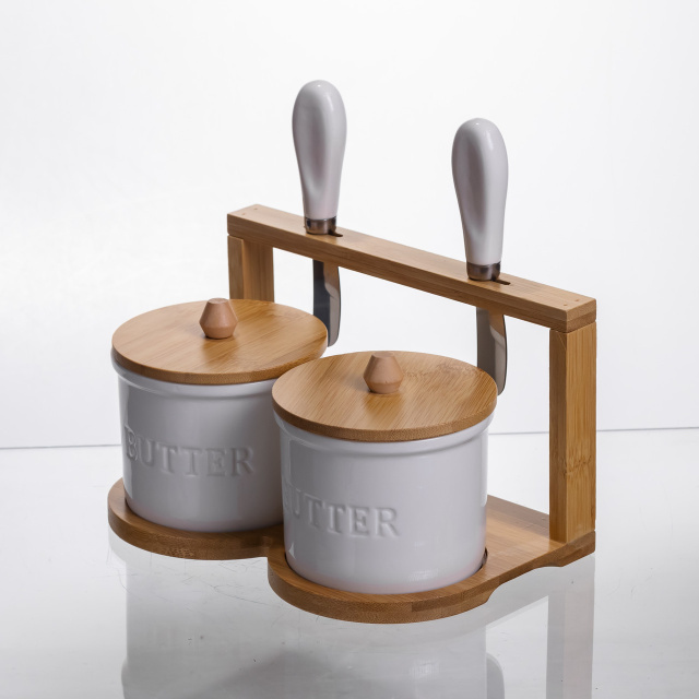 Набор масленок для сливочного масла и намазок 2 (шт) с ножами 2 (шт) на бамбуковой подставке SCT-641