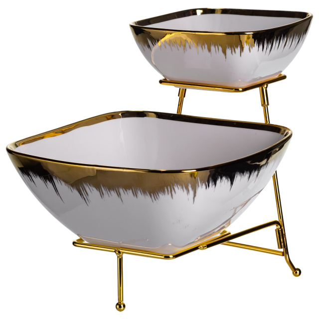 Фруктовница на 2 яруса фуршетная стойка для закусок 31×23×25 (см) конфетница Белая с золотом 2558-1