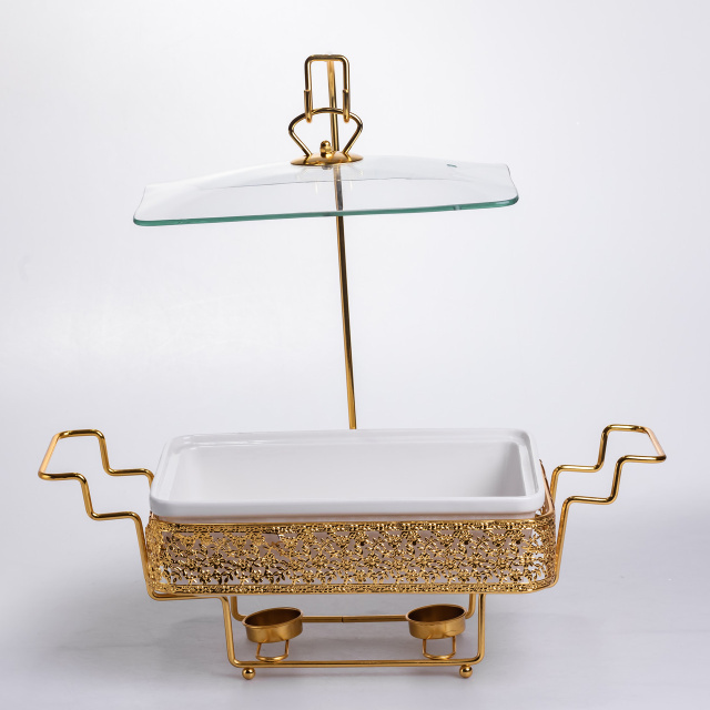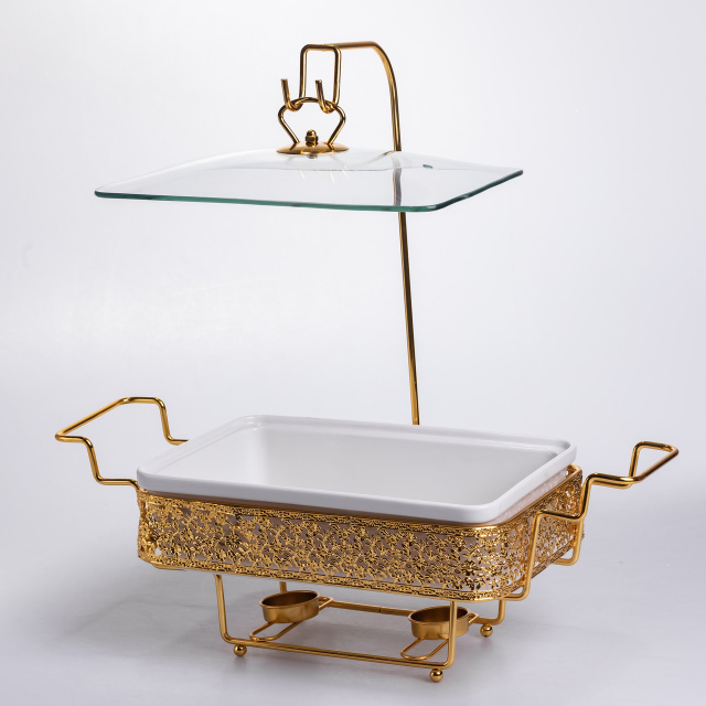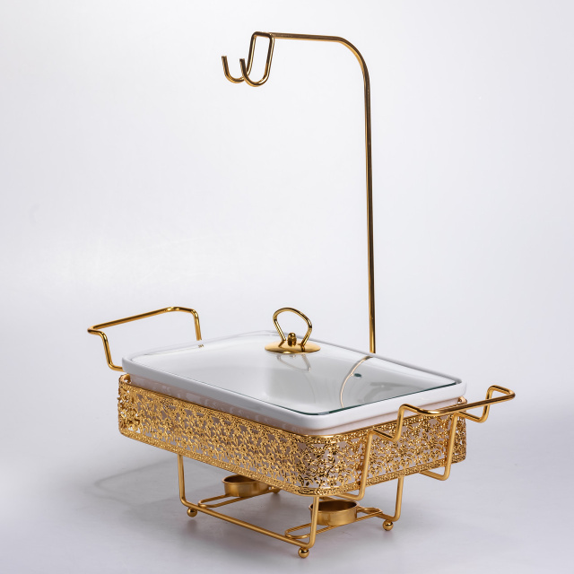 Мармитница настольная фарфоровая 3.5 литра мармит прямоугольный на подставке Белый с золотом YL-77