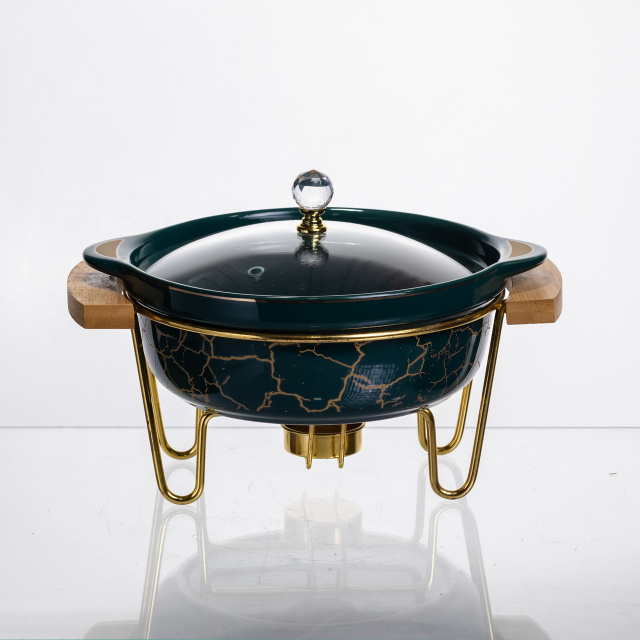 Мармит фарфоровый настольный круглый 800 (мл) с подогревом Зеленый мрамор LC-713