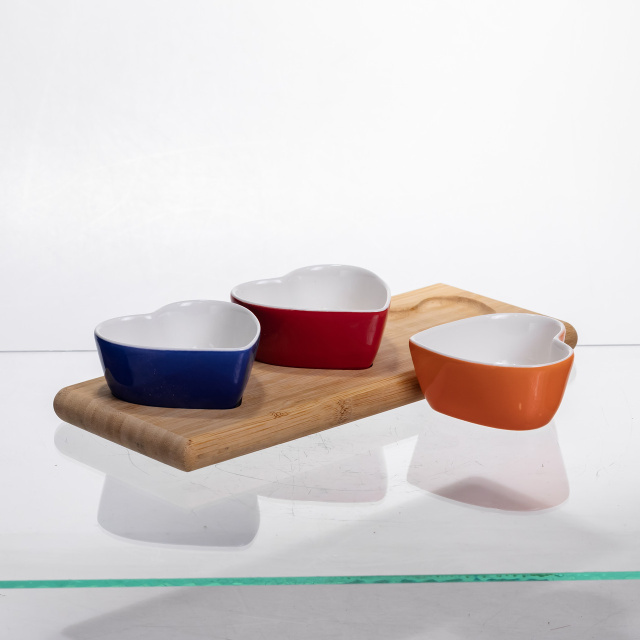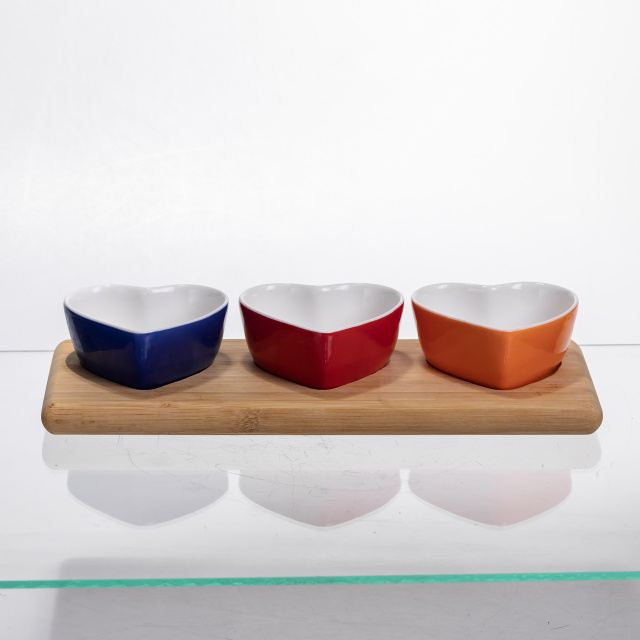UA MarketОдесаBestoreТовары и услугиИзделия из дереваМенажницыНабор менажниц фарфоровых для закусок 3 (шт) по 100 (мл) менажницы в форме сердца на бамбуковой подставке TX001