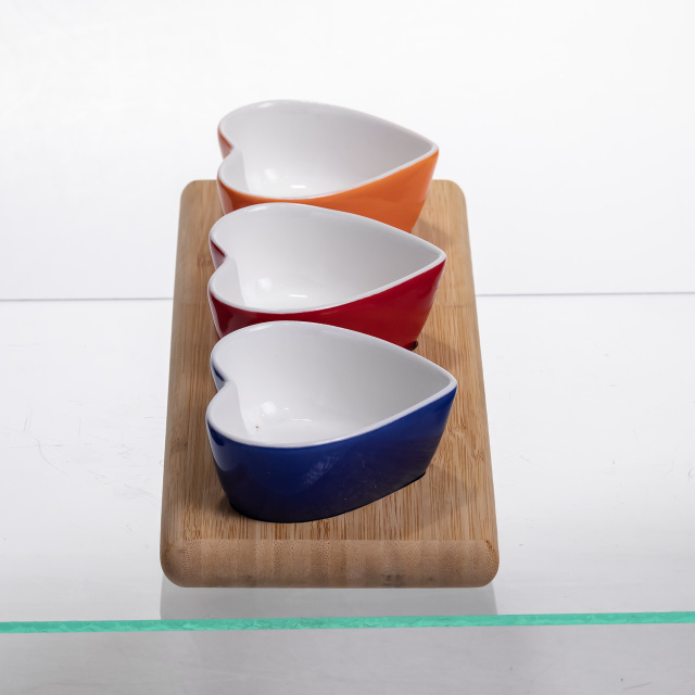 Набор менажниц фарфоровых для закусок 3 (шт) по 100 (мл) менажницы в форме сердца на бамбуковой подставке TX001