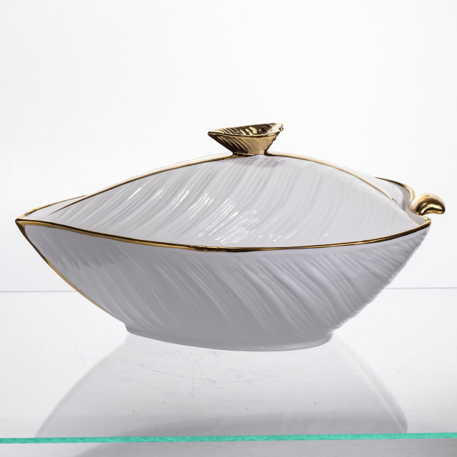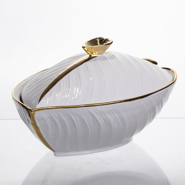 Современная фарфоровая супница с крышкой — это стильное решение для тех, кто ценит утончённый дизайн и практичность. Её оригинальная форма с мягкими линиями и серебристым кантом придаёт сервировке особый шарм, делая подачу блюд не просто удобной, а эстетически совершенной. Такая супница станет элегантным акцентом как на повседневном, так и на праздничном столе. Основные характеристики кастрюли бульонницы Объем: 1.5 л; Размер: 32×21×16 см; Материал: фарфор. Особенности фарфоровой супницы: Изготовлена из прочного высококачественного фарфора; Оригинальная форма с плавными изгибами и рельефной поверхностью; Серебристая окантовка подчёркивает современный стиль; Крышка с декоративной ручкой сохраняет тепло и аромат блюд; Гладкая глазурованная поверхность легко очищается и устойчива к пятнам. Эта фарфоровая супница сочетает в себе элегантность, функциональность и современный дизайн. Она идеально подойдёт для подачи супов, рагу и бульонов, а также станет красивым элементом сервировки. Универсальный стиль и изысканные детали делают её отличным выбором для дома или в качестве подарка ценителям красивой посуды.