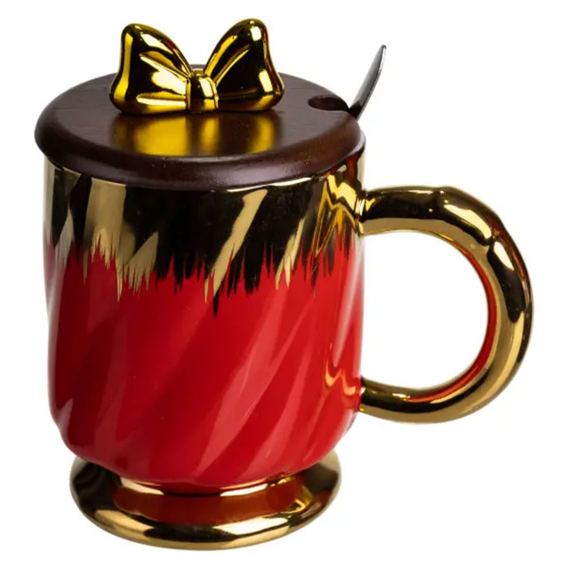 Новогодняя фарфоровая чашка «Золотой Вихрь» 450 мл с крышкой и ложкой Yiwu FM-23C