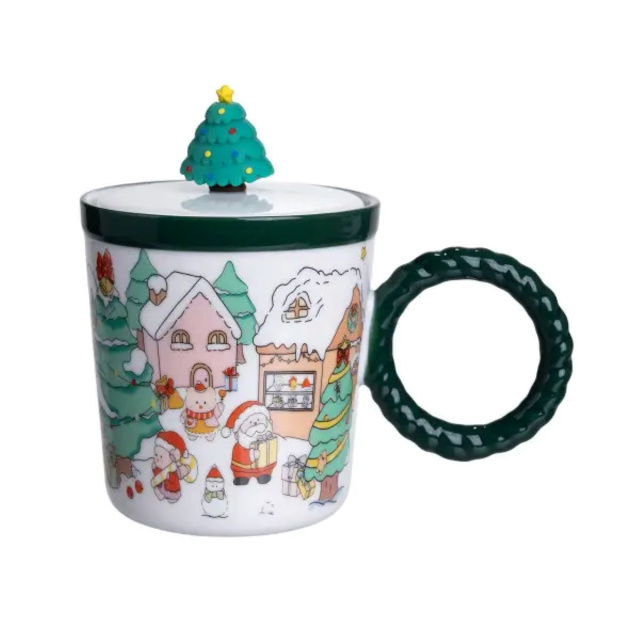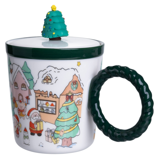 Чашка фарфоровая с крышкой Елка 400 (мл) Зеленый Yiwu FM-CS-36B