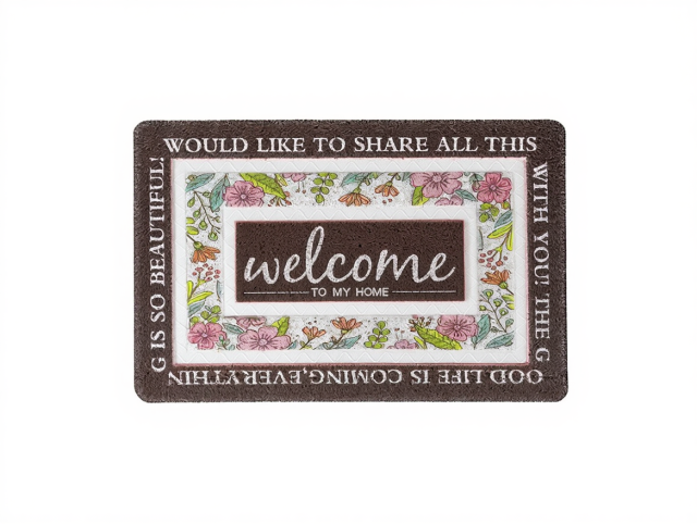 Сделайте вход в ваш дом по-настоящему дружелюбным и уютным с первого шага. Этот коврик не только защитит ваш дом от уличной грязи, но и будет каждый раз встречать вас и ваших гостей теплыми словами. Дизайн изделия сочетает практичность и эстетику: центральная надпись "Welcome to my home" обрамлен нежным узором из полевых цветов и листьев. Изюминкой модели является вдохновляющая цитата по периметру, что добавляет положительного настроения. Характеристики придверного коврика, грязезащитного покрытия и коврика под двери: Тип изделия: коврик придверный, грязезащитный; Материал: ПВХ (поливинилхлорид); Размер (ДхШ): 60 х 40 см; Вес: 0,500 кг; Декор: надпись Welcome, цветочный орнамент, текстовый принт по краю; Форма: прямоугольная; Назначение: для прихожей, коридора, входа в дом; Особенности: легко моется, задерживает грязь, долговечный материал. Комплектация: Коврик - 1 шт Изготовлен из прочного ПВХ, коврик устойчив к износу, влаге и грязи. Его пористая структура эффективно задерживает песок и пыль с обуви, оставляя пол чистым. Ухаживать за ним очень просто — достаточно встряхнуть или промыть водой. Универсальный размер 60х40 см идеально подходит для стандартных входных дверей квартиры или дома.