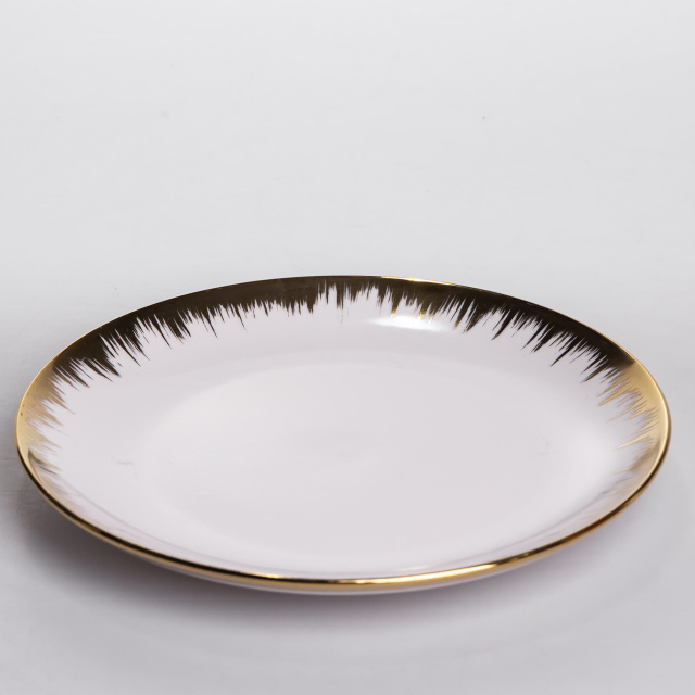 Эталон современной классики на вашем столе! Этот белоснежный сервиз сочетает в себе чистоту цвета, фактурность формы и изысканность деталей. Дизайн и особенности: Посуда выполнена из качественной белой керамики с рельефной внешней поверхностью в полоску, что придает ему объем и стиль. Главное украшение – контрастный ободок золотисто-черного цвета. Этот деликатный акцент подчеркивает форму посуды и придает сервизу торжественный, но при этом сдержанный вид, который подойдет к любому интерьеру. Идеальная комплектация (24 предмета): набор рассчитан на 6 персон и включает в себя все необходимое для современной сервировки (актуальные глубокие пиалы вместо устаревших суповых тарелок): Обедные тарелки (Ø 27 см): Большие и удобные для подачи основных блюд. Десертные тарелки (Ø 19 см): Универсальные тарелки для закусок, салатов или десертов. Глубокие пиалы/Боулы (Ø 14 см, 700 мл): Современный тренд сервировки. Идеальны для первых блюд, бульонов, утренних каш или салатов. Объем 700 мл позволяет подать полноценную порцию. Чашки (350 мл): удобные кружки для чая или кофе, идеально дополняющие комплект. Основные характеристики столового сервиза из фарфора: Тип: Столовый сервиз Количество персон: 6 Количество предметов: 24 Материал: фарфор Цвет: Белый с золотисто-черным ободком Фактура: Рельефная (полоска) 6 x Тарелка обеденная (Ø 27 см) 6 x Тарелка десертная (Ø 19 см) 6 x Пиала глубокая (Ø 14 см, объем 700 мл) 6 x Чашка (Ø 9 см, объем 350 мл) Вес набора: 11.8 кг Этот набор – универсальное решение: он достаточно элегантный для праздничного ужина и достаточно практичный для ежедневного использования.