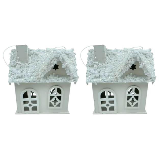 Набор декоративных новогодних домиков из дерева 5×10×12 (см) елочная подвеска Молочный 28124201