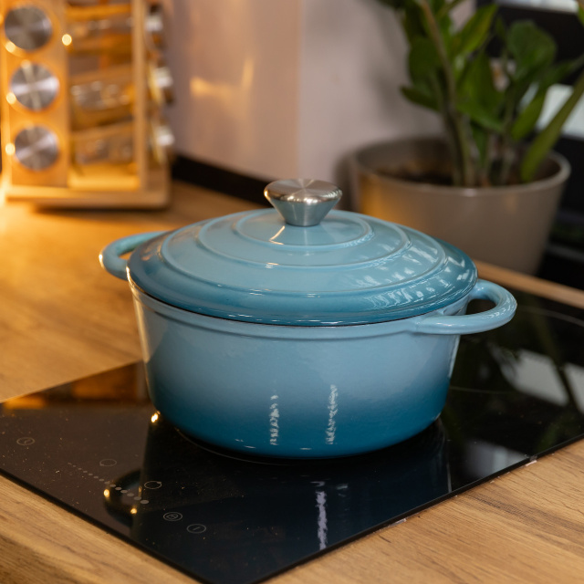 Чугунная кастрюля с эмалированным покрытием, 2.5 л – надежная и стильная посуда для запекания, тушения и длительного томления. Чугунная основа равномерно распределяет тепло и долго сохраняет его, обеспечивая идеальные условия для приготовления насыщенных и ароматных блюд. Основные характеристики чугунной кастрюли: Объем: 2.5 л; Диаметр: 22 см; Внутренний диаметр: 18 см; Высота: 15 см; Высота без крышки: 9 см; Толщина стенок 5 мм; Материал: чугун; Покрытие: эмаль; Тип крепления ручек: литий; Тип плиты: все типы плит. Преимущества чугунной кастрюли жаровни: Эмалированное покрытие защищает от окисления, предотвращает пригорание и упрощает уход. Чугунная конструкция сохраняет тепло дольше, обеспечивая равномерное приготовление без резких перепадов температуры. Подходит для всех типов плит: газовых, электрических, индукционных, а также для использования в духовке. Прочные литые ручки удобны для переноски и устойчивы к высоким температурам. Классический дизайн и функциональность делают эту кастрюлю незаменимой на кухне, помогая создавать блюда ресторанного уровня в домашних условиях.