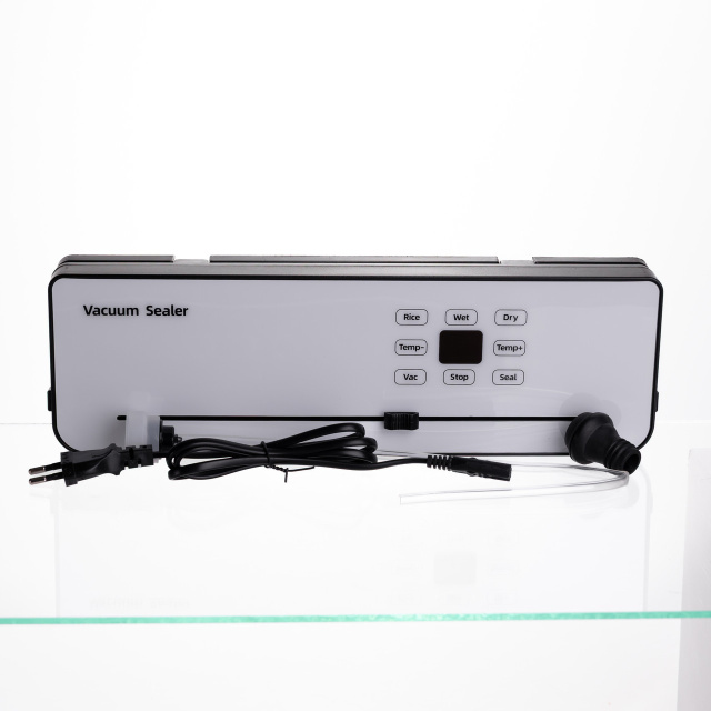Вакуумный упаковщик – это современное решение для безопасного и длительного хранения продуктов. Мощное всасывание и широкая запаивающая поверхность гарантируют надежную герметизацию, предотвращая попадание воздуха и продлевая срок хранения продуктов. Вакууматор поддерживает сухие и влажные режимы, подходит для вакуумирования различных продуктов. Основные характеристики вакууматора кухонного: длина шва запаивания: 300 мм; мощность: 120 Вт; размер: 35×10.5×5 см; давление вакуума: 65 кПа; управление: сенсорная панель; функции: для сухого и влажного вакуумирования; дополнительные возможности: встроенный резак для пакетов; комплектация: 10 вакуумных пакетов. Комплектация: вакууматор; 10 пакетов для вакуумирования. Правила упаковки вакууматора бытового: используйте только специальные пакеты; кладите пакет максимально ровно; заполняйте пакет не больше, чем на 3/4 объема; жирную пищу упаковывайте в пакет, предварительно подвернув его края, чтобы жир не попал в насос; при упаковке мягких продуктов (например, клубники) следите за процессом, чтобы не повредить ягоды. Для удобства использования прибор оснащен водонепроницаемым сенсорным экраном и встроенным резаком, что упрощает процесс упаковки и ухода за устройством. Это идеальный выбор для тех, кто хочет сохранить продукты свежими дольше и использовать их для приготовления.