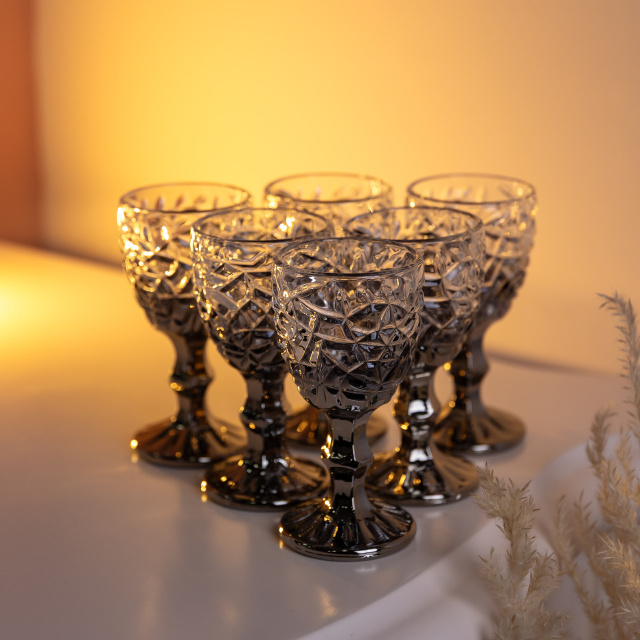 Набор рюмок на ножке 6 штук 50 мл для водки наливки подарочные рюмки стеклянные фигурные Серые HP-19-186