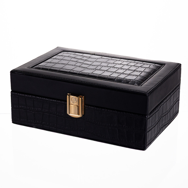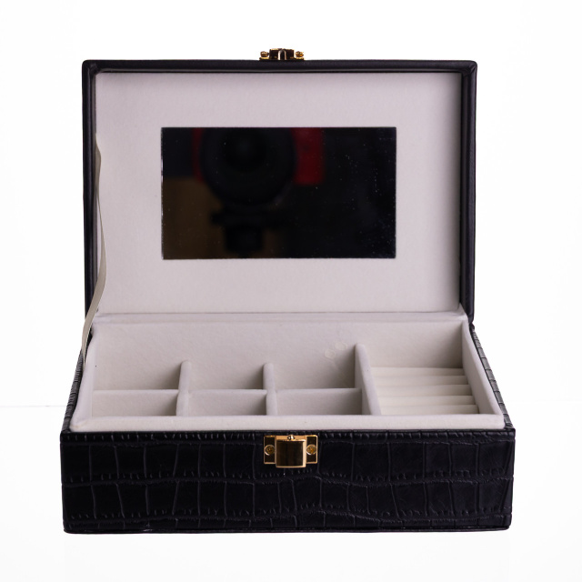 Шкатулка для украшений из эко кожи 10 отделений с зеркалом 20×14×8 см Черный HP-5-19B