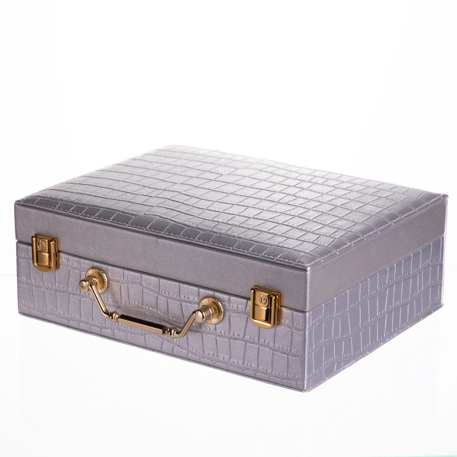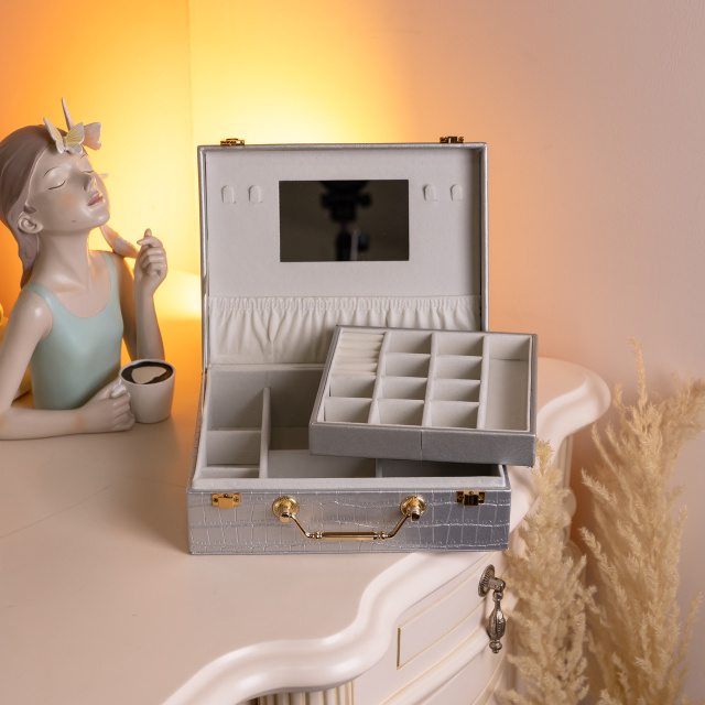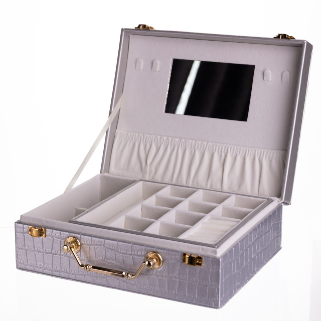 Шкатулка для украшений из эко кожи 19 отделений с зеркалом 23.5×14×8 см Серый HP-5-20G
