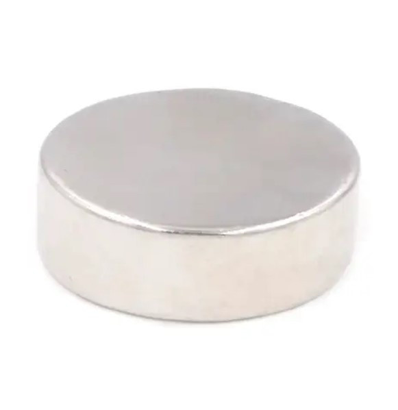 Круглий неодимовий магніт виготовлений у формі диска діаметром 30 мм і заввишки 10 мм із матеріалу NdFeB (неодим-залізо-бор). Має дуже високі показники магнітної індукції; роз'єднати два такі магніти на розрив дуже складно; для роз'єднання їх потрібно зрушувати відносно один одного. Але водночас навіть на невеликій відстані; у кілька міліметрів; ці магніти швидко втрачають свої магнітні властивості та програвають навіть феритовим побратимам.