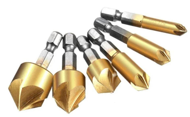 Застосовується для обробки просвердлених отворів під потаємні головки болтів; гвинтів і заклепок або для зняття заусенца з отвору і додання йому естетичного вигляду.