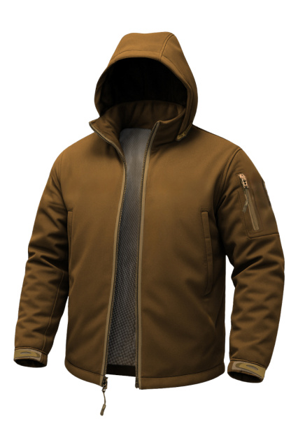 • Зовнішній шар: тканина Softshell — міцний, еластичний матеріал із мембраною, що надійно захищає від вітру, снігу та дощу, водночас дозволяючи тілу «дихати».
