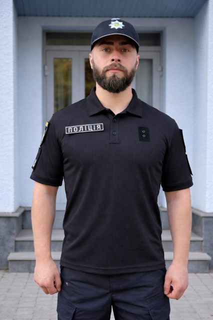 Теніска поло короткий рукав для Поліції чорна матеріал Coolmax