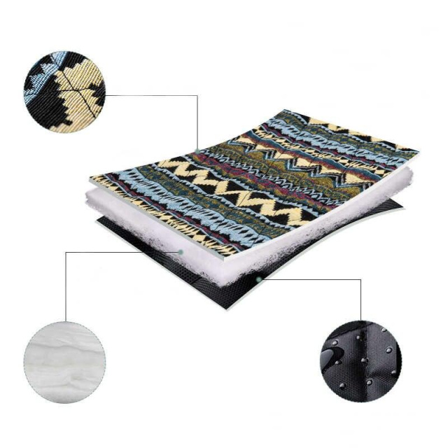Килимок кемпінговий для пікніка Naturehike для комфортного відпочинку на природі. Килимок виготовлений з поліестеру, має три шари тканини, що робить його теплим. Нижній шар килимка укріплено, що захищає його від пошкоджень. Килимок можна прати в пральній машині. Килимок у стилі бохо стильний та зручний для пікніка, відпочинку в парку чи на пляжі.