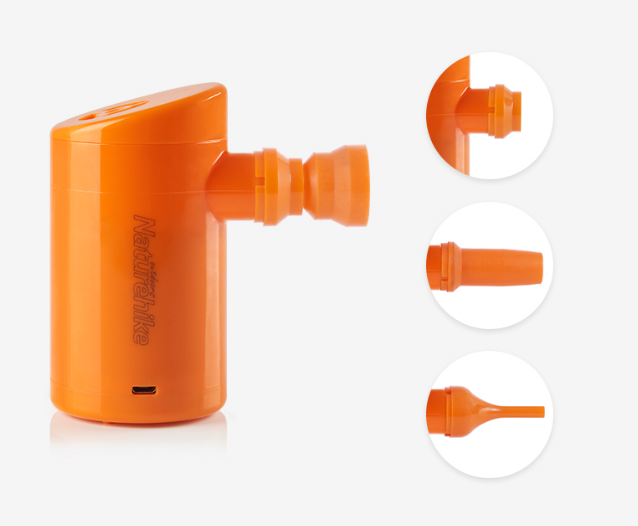 Насос Naturehike Mini Air Pump - портативний міні електричний повітряний насос, незамінний помічник для надувних матраців, подушок. Дуже компактний, що дозволить брати його з собою навіть в недовгі походи.У комплект з компресором входять 4 насадки під різні клапани, USB шнур для зарядки акумулятора і мішечок для зберігання і транспортування.