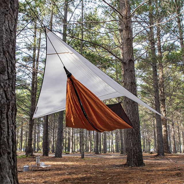 Особливістю даної моделі гамака Naturehike є наявність захисної антимоскітної сітки та наявність тенту, який завадить потраплянню дощу чи сонячних променів на користувача. Передбачений спеціальний карман для телефона або для інших необхідних речей, які повинні бути під рукою. У комплектацію входять чохол для зберігання, алюмінієві кілочки, вітрова мотузка, тент, гамак з москітною сіткою.