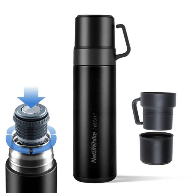 Термос Naturehike 600 мл NH17S020-B виготовлений із високоякісної нержавіючої сталі 304 марки. Стане незамінним аксесуаром у туристичній подорожі чи у повсякденному житті. Спеціальна конструкція термоса Naturehike зберігає напої гарячими чи холодними до 20 годин. По вазі термос Naturehike дуже легкий, всього 400 грам. Чаша термоса розкладається на дві повноцінні кружки для напоїв, якими можна користуватися удвох.
