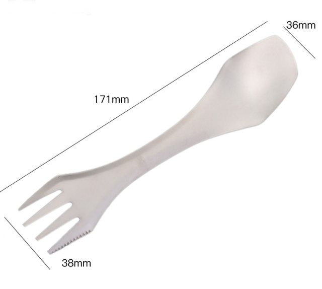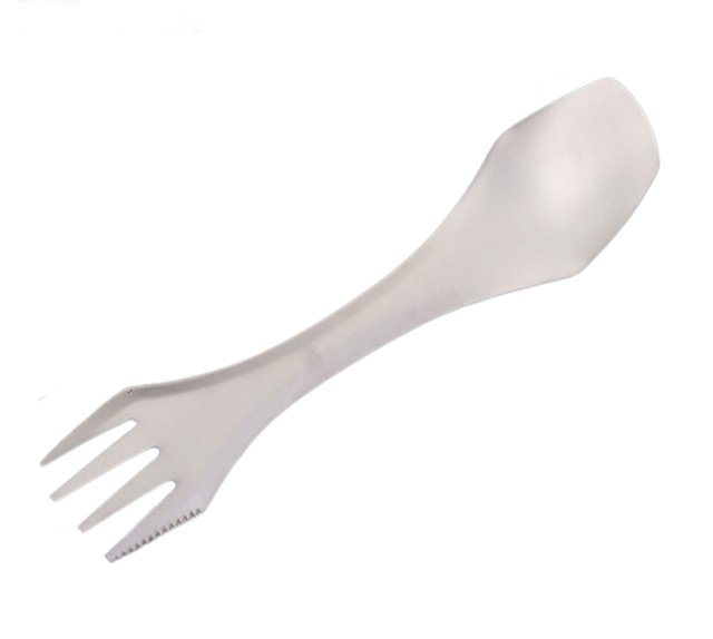Ложко-виделка з ножем Kyson KS-1066 призначена для походів, туризму, рибалки або для виживання. Виготовлена з титанового сплаву. Ложка тонка та легка - важить 16,5 грамів.