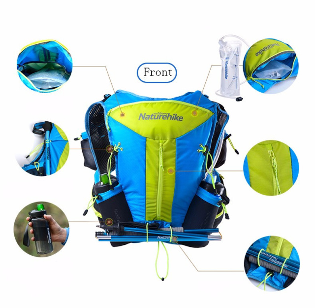 Наплічник Naturehike Cross country розроблений спеціально для бігового спорту. Виконаний з якісного і міцного матеріалу, нейлону. Матеріал надійний, зносостійкий і водостійкий. Рюкзак має одне основне відділення на блискавці, внутрішні кишені для дрібниць, зовнішні кишені на блискавці і без фіксації.