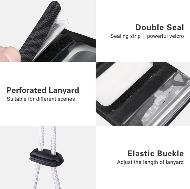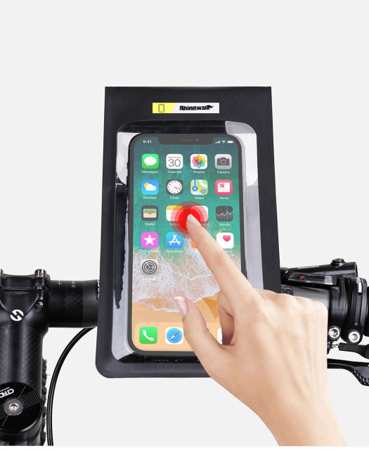 Велочохол Rhinowalk Bike Phone 7 легко кріпиться на кермо велосипеда, мопеда, самоката. Призначений для зручного розміщення телефону у спеціальній сенсорній кишеньці з прозорою панеллю. За своїми властивостями водонепроникний, підходить до будь-яких моделей телефонів. Ущільнений матеріал корпусу надійно захищає пристрій від ударів на дорозі. Шви велочохла Rhinowalk Bike Phone зварені за допомогою сучасного ультразвукового зварювання, відсутні нитки або клейові з'єднання.