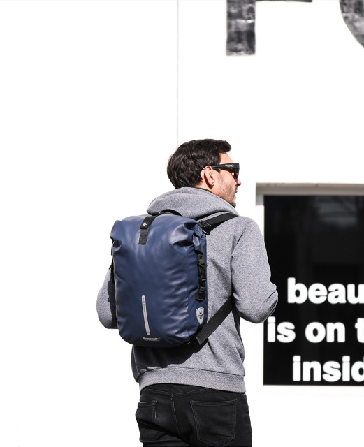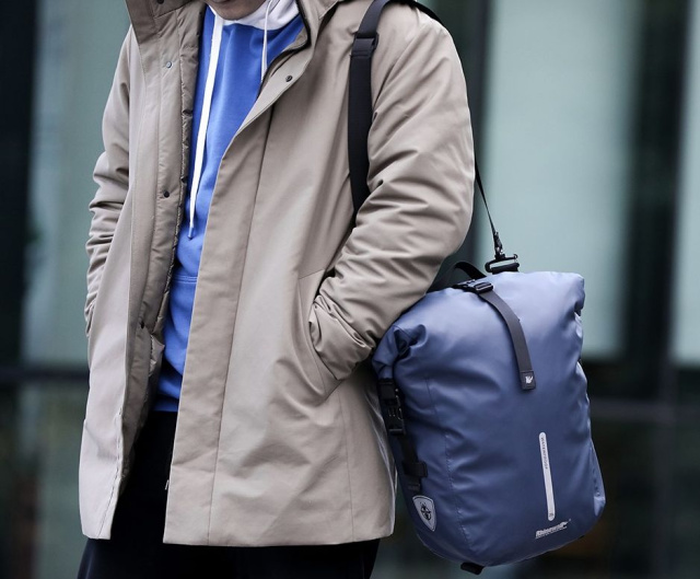 Велосумка-рюкзак Rhinowalk для велосипедиста виготовлена з водовідштовхувальної тканини із ламінованою гумовою поверхнею. Блискавка зроблена з термогерметичної водонепроникної стрічки, що запобігає потраплянню дощової води всередину рюкзака. У комплектацію входить спеціальний дощовик, який відштовхує воду та призначений для додаткового захисту від бруду і сильного дощу. Сумка рюкзак Rhinowalk може використовуватися для поїздок на електросамокаті, байку, велосипеді або для піших прогулянок. Місткість 20 літрів.