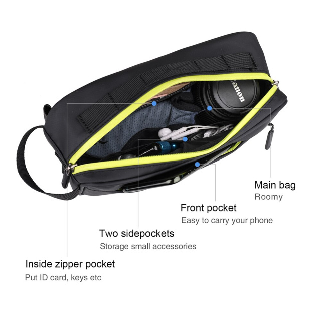 Велосумка Rhinowalk надійно кріпиться на кермо велосипеда, самоката, мопеда чи мотоцикла. Присутнє спеціальне відділення на блискавці для надійного зберігання речей. В додаткову кишеню на передній стороні сумки можна покласти телефон, гаманець та легко витягти під час поїздки.