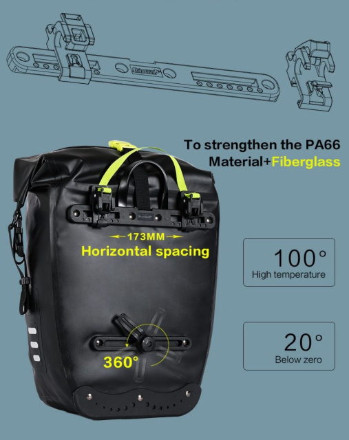 На передній частині гермосумки Rhinowalk 500D розташоване кріплення для ліхтарика, необхідного у нічний час. Закріпити сумку можна на багажнику за допомогою міцних ремінців зафіксувавши в одному положенні.