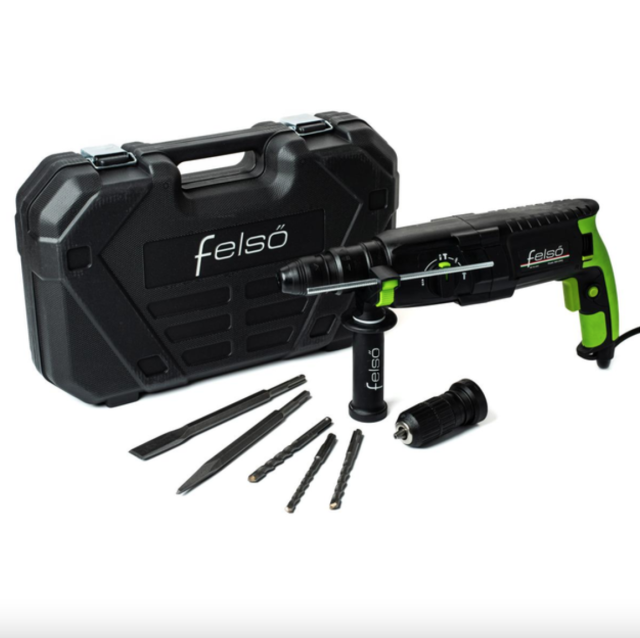 Перфератор прямий RH1200Q Felső застосовують для нескладних робіт з будівництва та ремонту. Він підходить для використання вдома: буріння отворів невеликого діаметру, штроблення, розмішування будівельних сумішей.