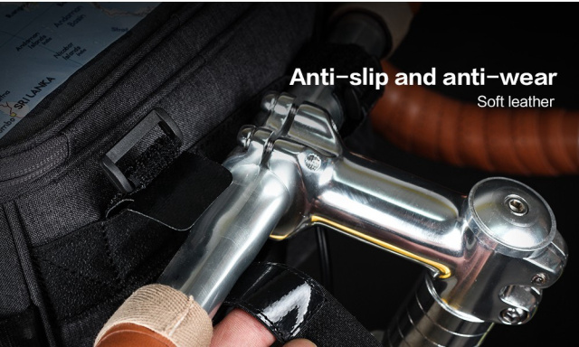 Велосумка Rhinowalk кріпиться на кермо спеціальними застібками, за бажання можна закріпити на рамі або носити на плечі, завдяки додатковому ремінцю з м'яким наплічником.