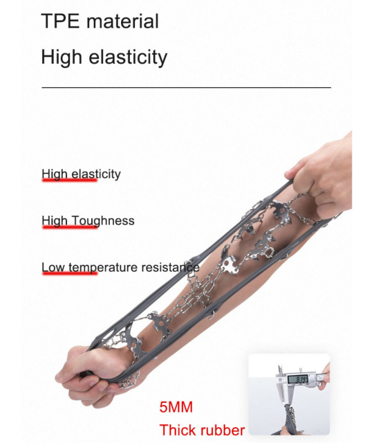 На кішках є 19 шипів, виготовлених з нержавіючої сталі, яка не боїться корозії. За рахунок гнучкого гумового каркасу таку модель можна носити практично з будь-яким взуттям, при цьому каркас не розтягнеться від частого використання, також він не боїться морозів.